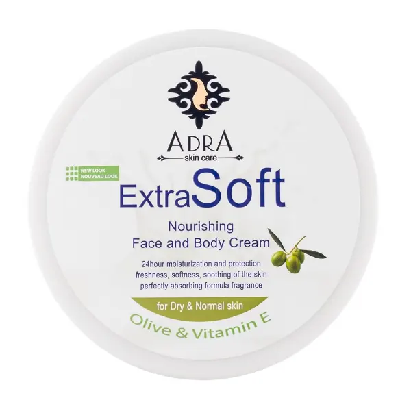 کرم مرطوب کننده اکستراسافت آدرا با عصاره زیتون و ویتامین E می باشد که این ترکیبات پوست دست و صورت را به صورت قوی و عمیق تغذیه و مرطوب میکنند و باعث حفظ رطوبت پوست تا 24 ساعت می شوند .