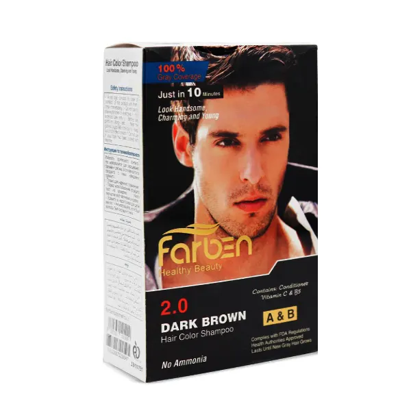 شامپو رنگ مو قهوه ای تیره فاربن برای پوشش صد در صدی سفیدی موهای آقایان توصیه میشود. این محصول رنگ ثابت و پایداری را بر روی مو ایجاد کرده و تا 18 مرتبه شستشو باقی می ماند. این شامپو رنگ مو بدون ایجاد هرگونه سوزش یا خارش بر روی پوست سر رنگ خرمایی طبیعی را بر روی موهای آقایان ایجاد کرده و باعث افزایش جذابیت چهره آن ها میشود.